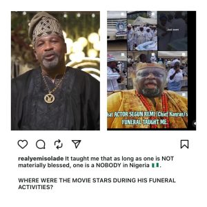 Veteran Nollywood actor, Yemi Solade, has shared his thoughts on the viral video of the final burial of late actor Segun Remi.