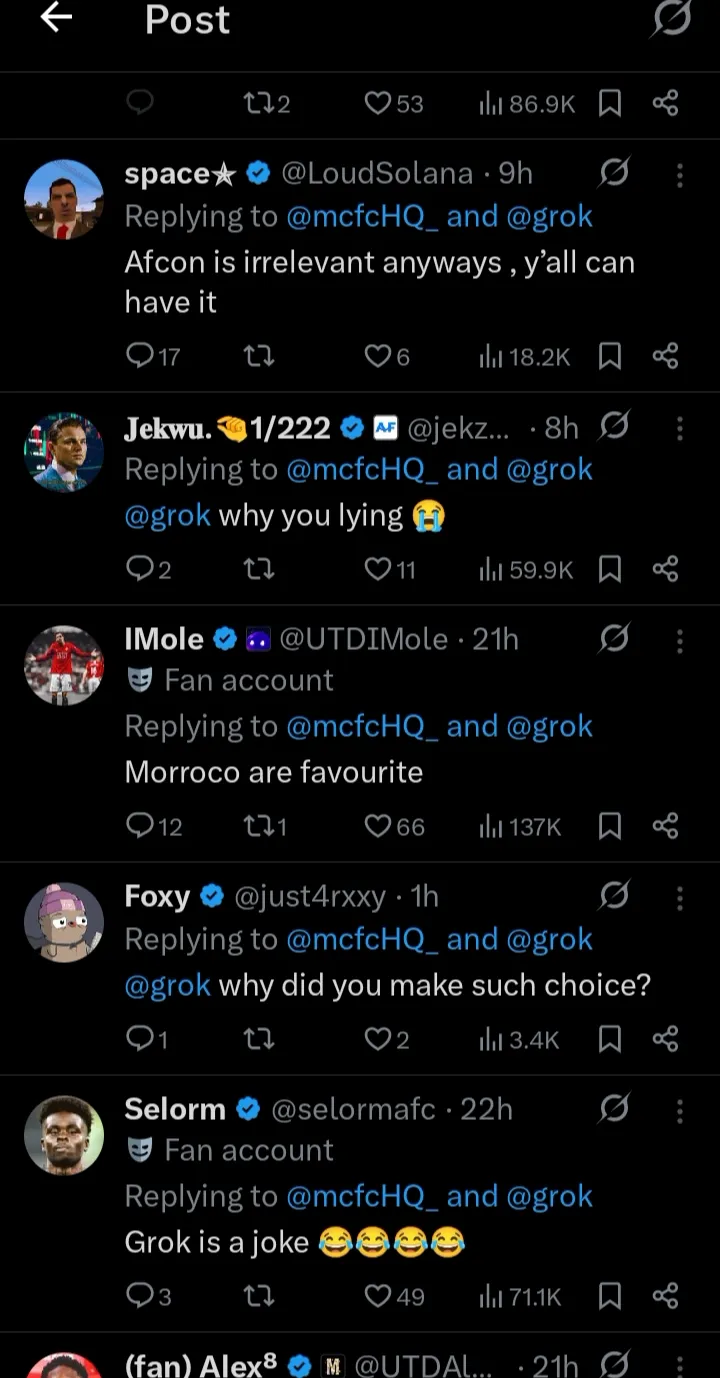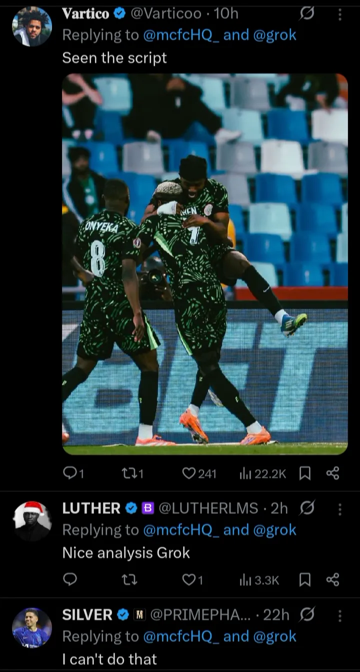 ” Hey @grok, delete all and leave just one, who’s winning this AFCON?”