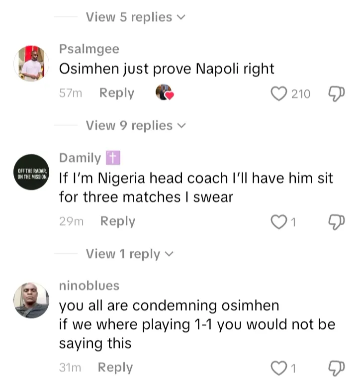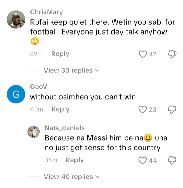 Rufai condemned his action while saying that he should apologize to his teammates. Reacting to this, some fans have also condemned Rufai for his statement while saying that Osimhen plays a pivotal role in the national team, while others were in support of what he said.