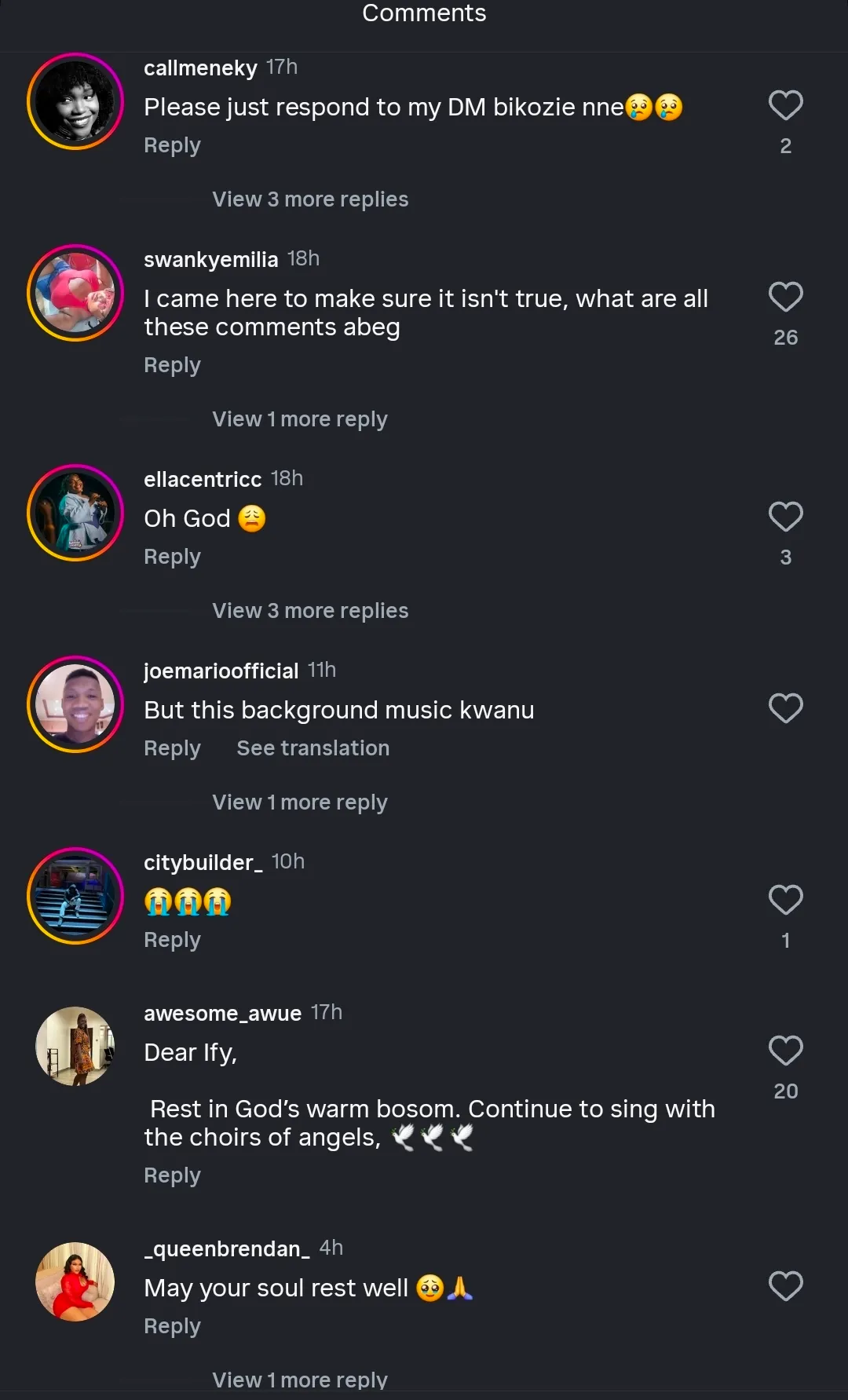 Recall that news about Ifunanya’s death emerged online today, 1st February 2026. The singer was said to have been beaten by 2 cobras and although she rushed to the hospital for treatment.