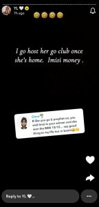 In response, Yhemo Lee promised to host a club party for Imisi once she returns home.