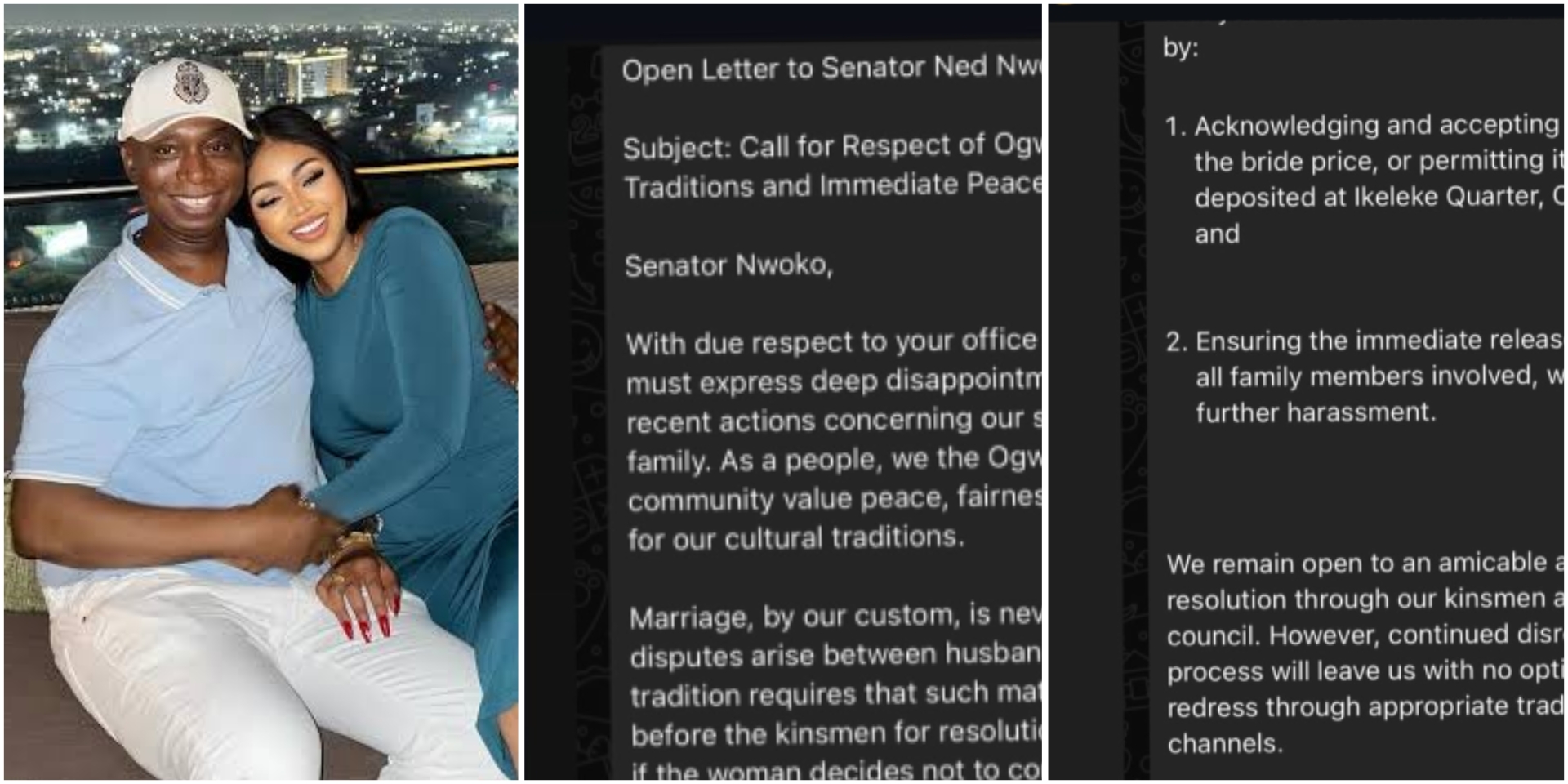 The letter urged Ned Nwoko to settle his marital issues amicably and desist from intimidating his wife, Regina and her family members.
