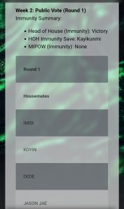 The chart showed how viewers and fans voted from week 2 (no evictions in week one) to 10.