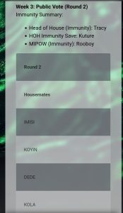 From the data released, Imisi occupied the first position by a wide margin from week two to week 10.