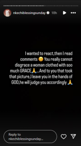 In reaction to the viral photo, Nkechi took to her Instagram stories to defend herself and address the critics.