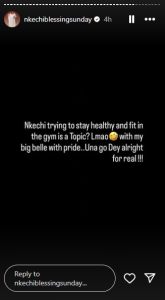 “God will judge whoever took it” – Nkechi Blessing reacts to viral unfiltered gym photo