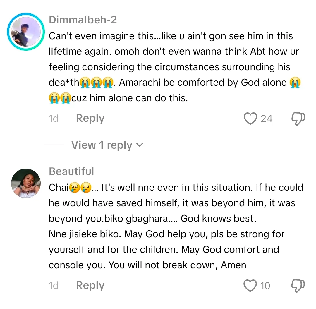 Amarachi, the wife of late China-based cloth merchant who lost his life in the tragic Great Nigeria House incident last year has sparked sympathetic comments due to a video she posted.