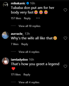 Seconds later, 2Baba nudged his wife to say hello to Candy, who in turn respectfully bowed to her.