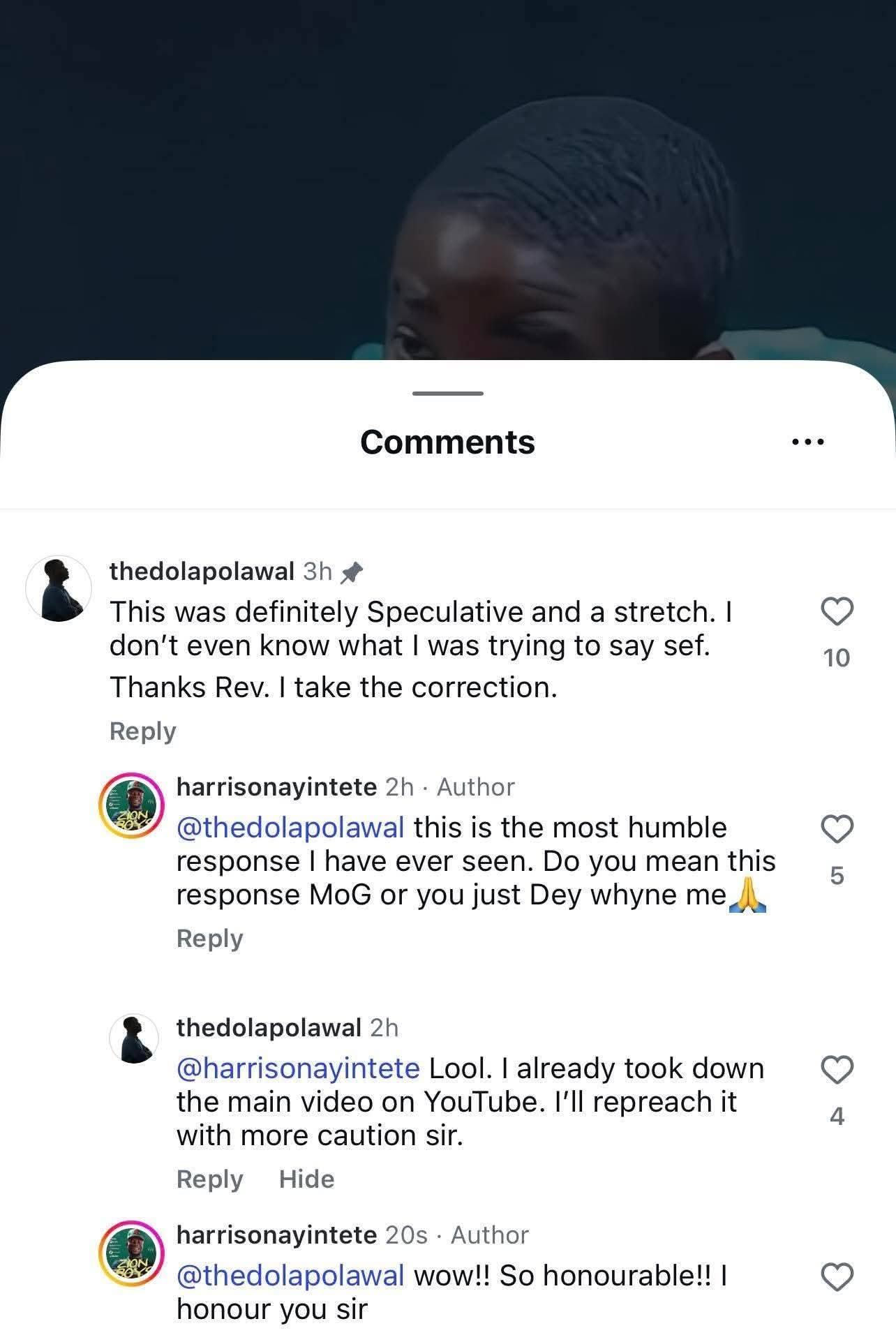 The interaction has since drawn attention online, with many praising Pastor Dolapo’s admission to being wrong.