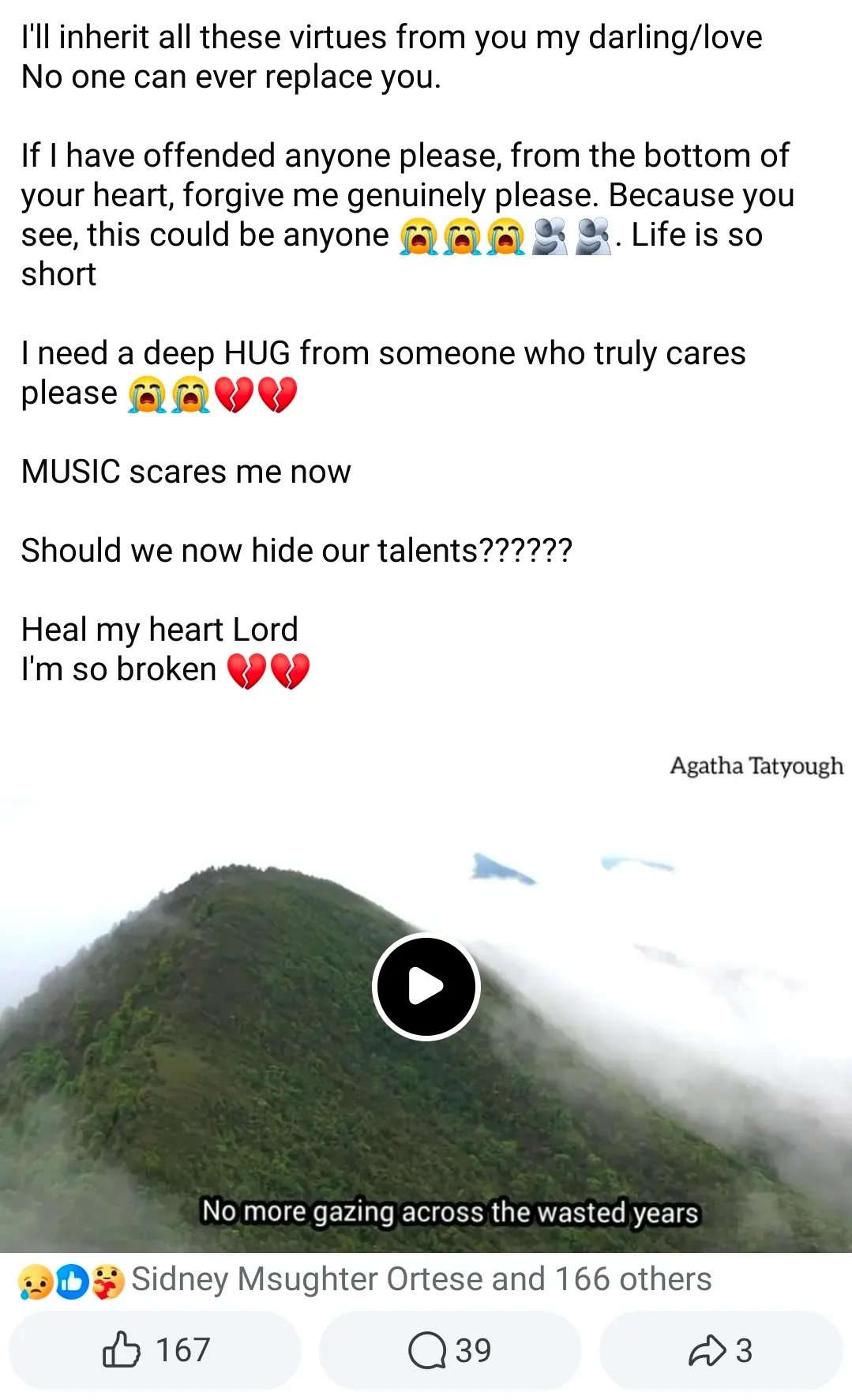 This world is cruel gosh “Your death didn’t only shatter me,it took away my joy and happiness too. You were always smiling. Full of life. Extremely talented.