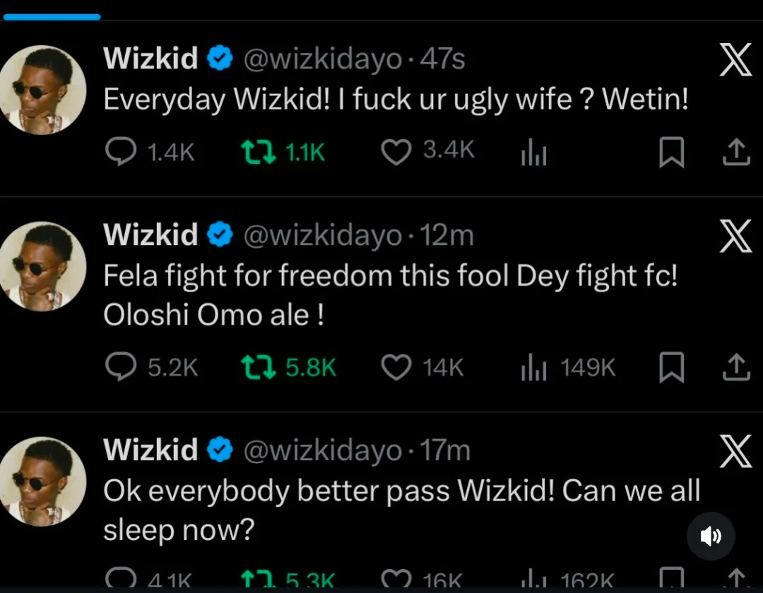 Wizkid also tweeted, “Fela fight for freedom this fool Dey fight fc! Oloshi Omo ale !.”