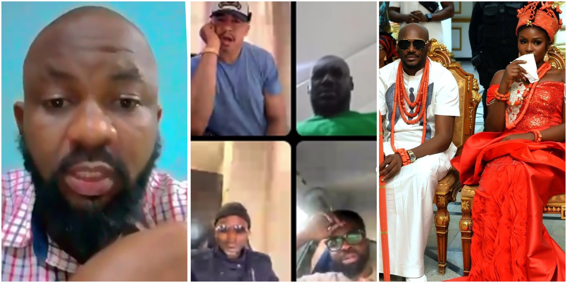 According to a post made by a man, @davidoghe, via a popular social media platform, X, formerly Twitter, he mentioned that he noticed something in the background of the video of a live call with Daddy Freeze when 2face joined the call.