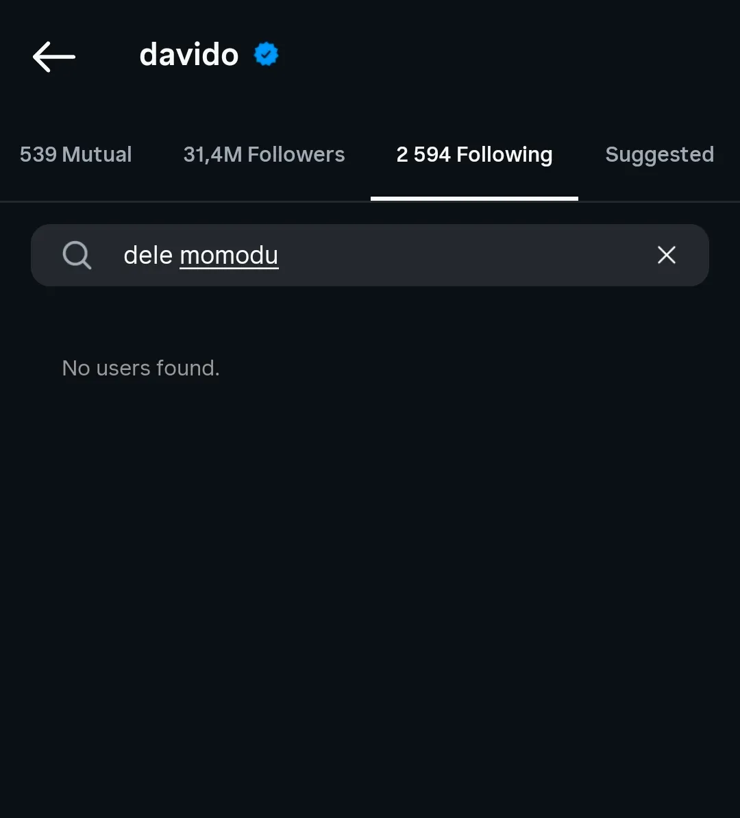 Interestingly, Momodu is still following Davido at the time of filing this report.