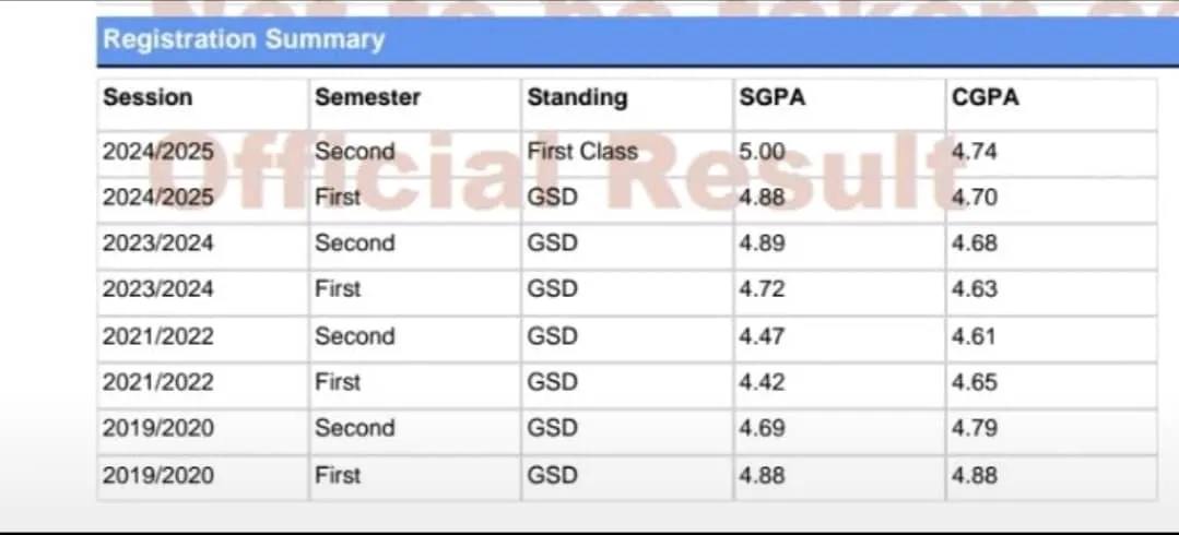 From day one, I set a clear goal: I wanted to graduate with a First Class. I even told myself, nothing less than 4.8. Year 1 ended well with a CGPA of 4.79. Then came year 2 and my first real academic setback. My grades slipped. I recorded a 4.42 GPA in the first semester, earned my only C (Accounting), and ended the year with a CGPA of about 4.61. I was discouraged, overwhelmed, and honestly scared that my First Class dream was slipping away.