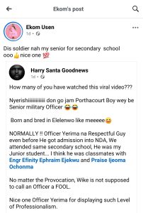 “Dis soldier nah my senior for secondary school ooo nice one .”