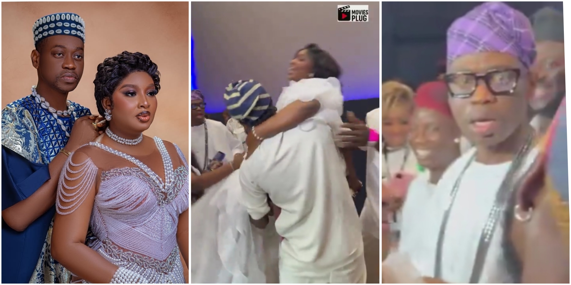 Lateef Adedimeji in awe as men carry his wife in front of him at an event (Video)