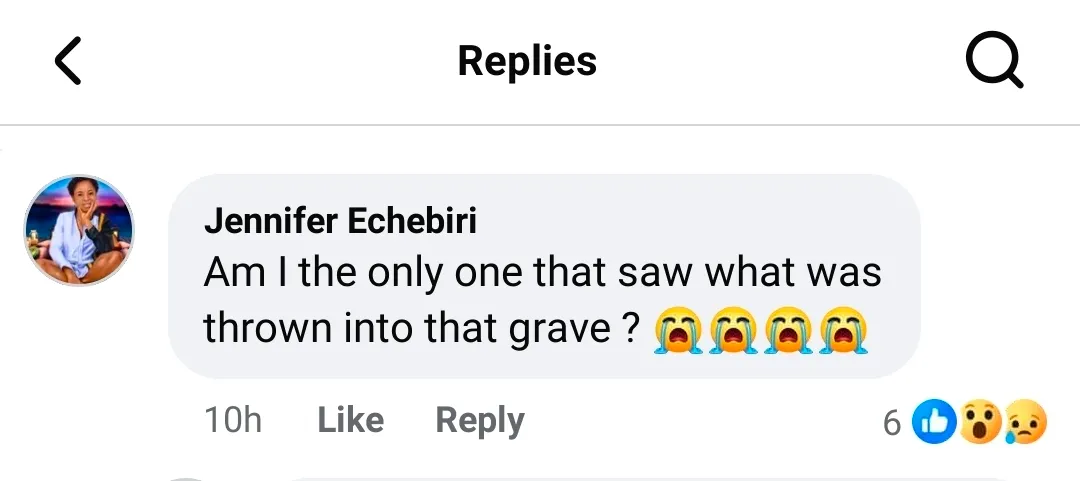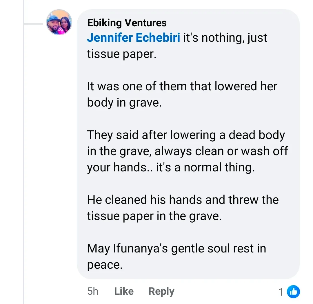“Jennifer Echebiri it’s nothing, just tissue paper. It was one of them that lowered her body in grave.