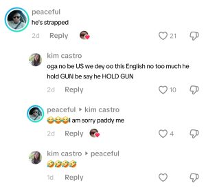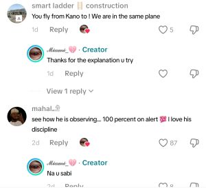 However, some individuals who watched the TikTok video noticed something in his trouser. One of those who noticed something, a user named Peaceful, reacted in the comments:
