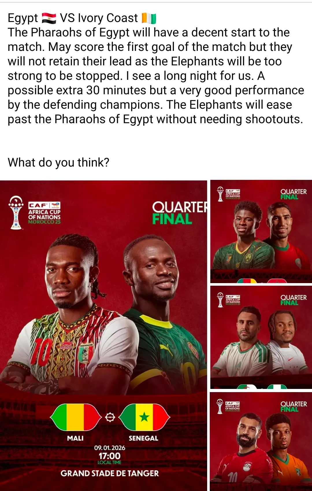 In a Facebook post on Thursday, January 8, Amadu stated that the match between Nigeria and Algeria would be a decent one.
