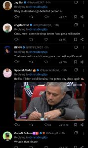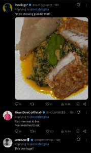 A screenshot of Mr Eazi’s meal after the wedding is below: