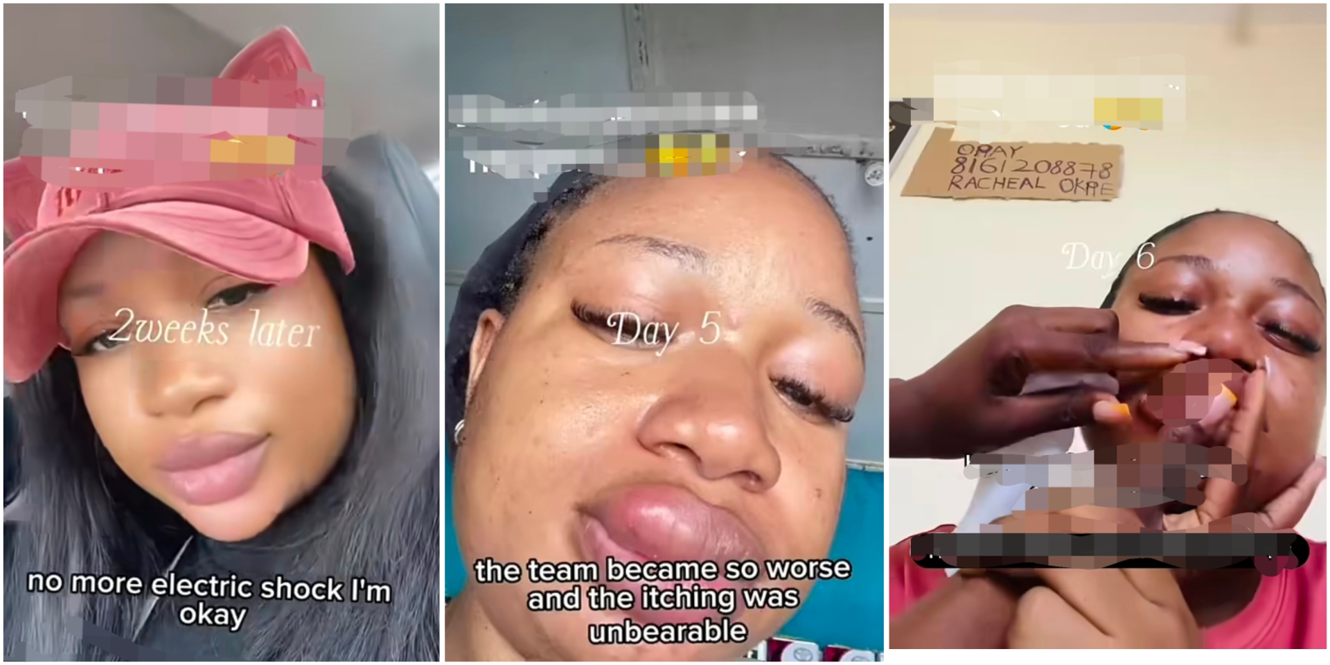 She revealed that she was given some drugs which she took but things weren’t getting better. However, on the 6th day, the pain became unbearable, according to her, she began having shocking sensation on her lips which caused her to ask her friend to pop it.