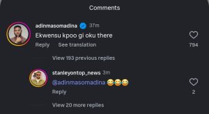 Commenting under the video shared by an IG blogger, he wrote in Igbo: