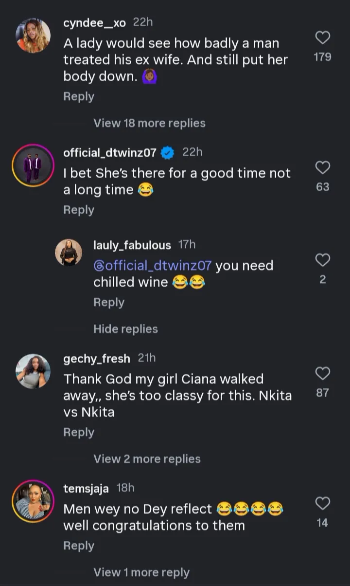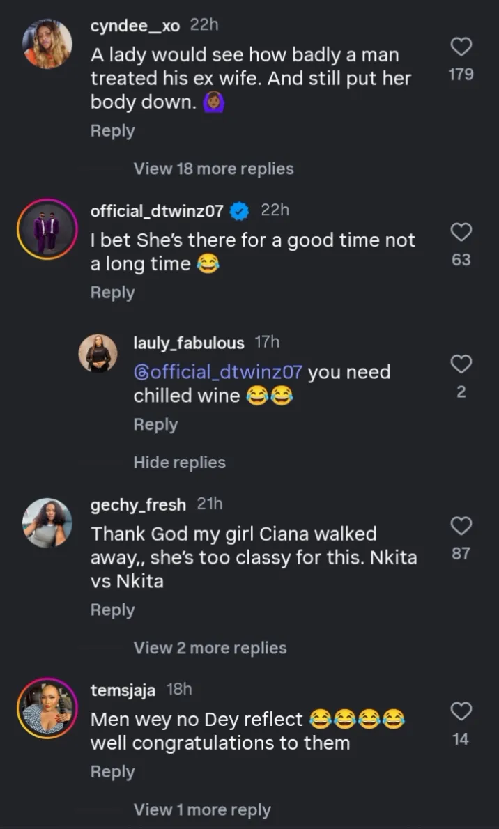 Some comments suggested that the new mystery lady should just enjoy herself like Ciana did before leaving the relationship.