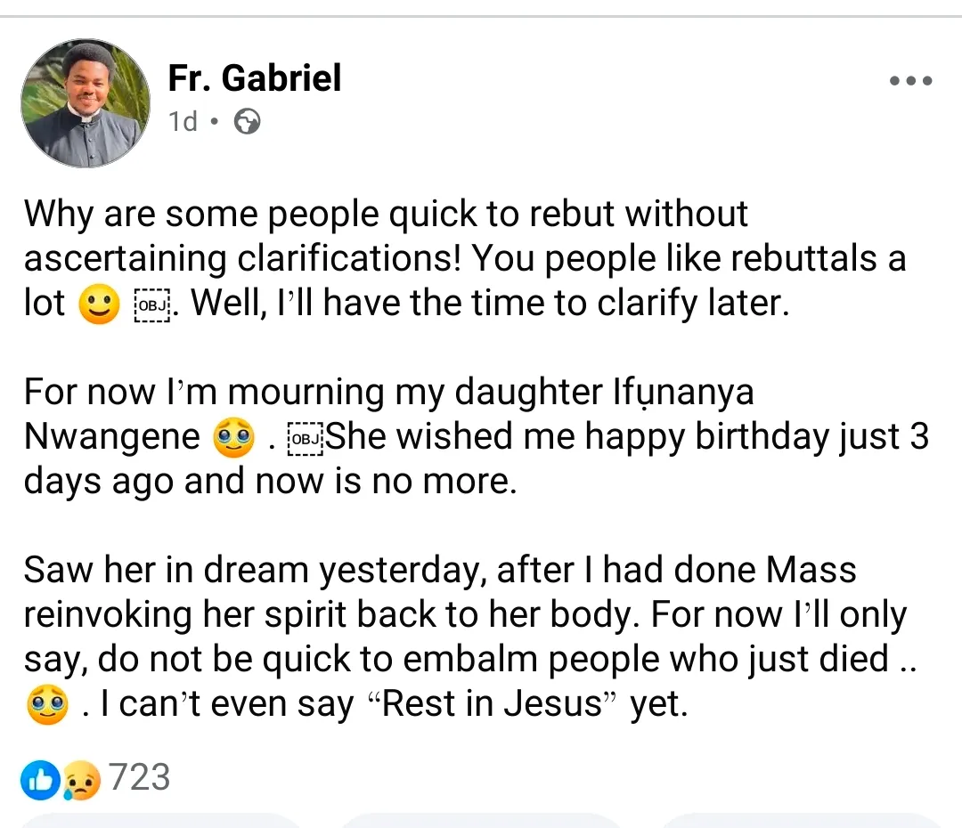 “Saw her in my dream” – Catholic priest spills what Nanyah told him 2 days before she passed on