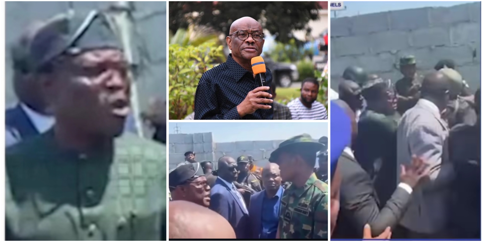 “See as them rush am” – Drama as soldiers challenge Nyesom Wike (Video)