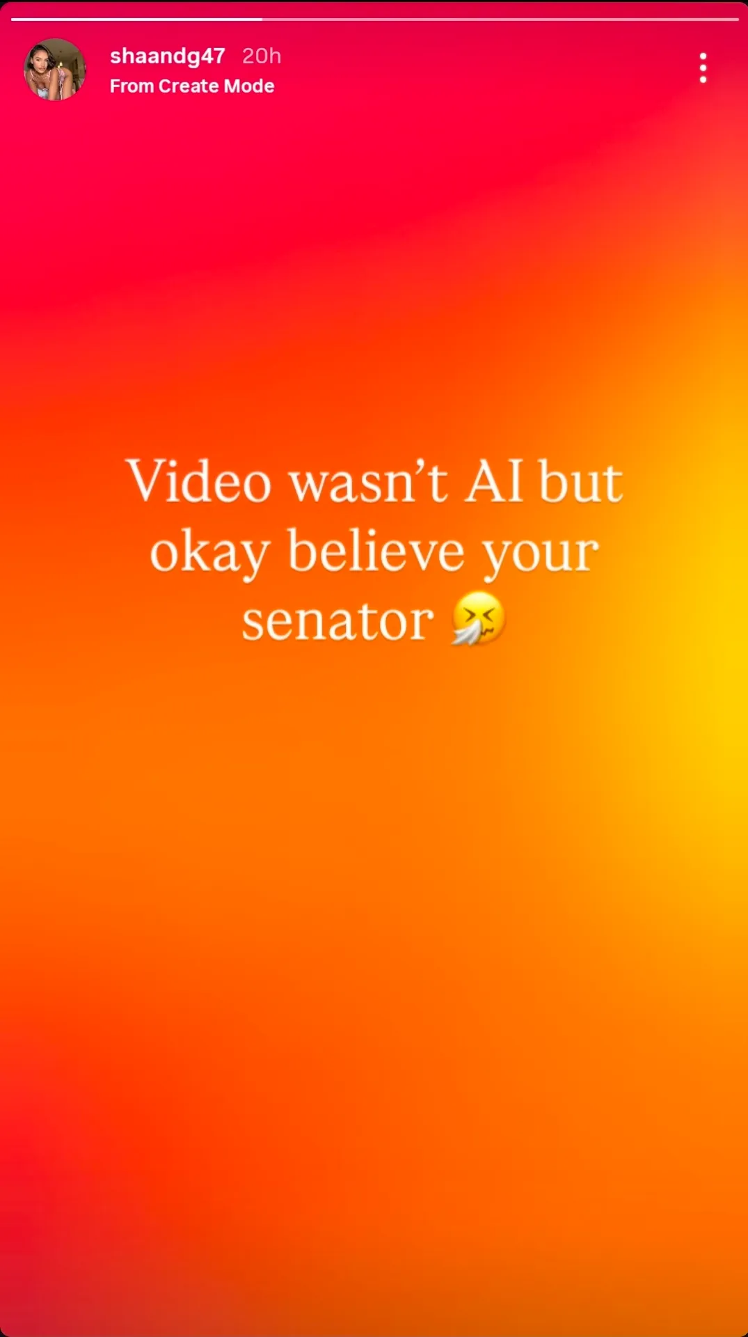 In her post, she appeared to counter the senator’s claim that the video was fake.