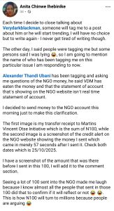 Alexander Thandi Ubani has been tagging and asking me questions of the NGO money, he said VDM has eaten the money and that the statement of account that’s showing on the NGO website isn’t real time statement of account.