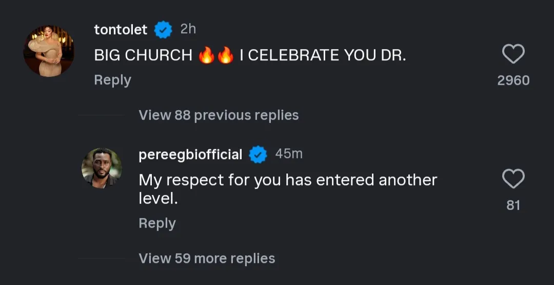 Nigerian actor and ex-BBNaija star, Pere Egbi also reacted to her comment on Olakunle churchill’s post.