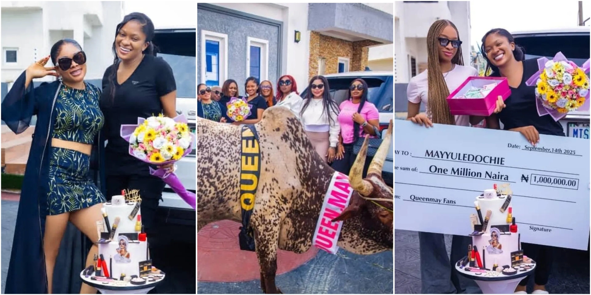 May received a cow, N1 million, a cake, a bouquet, and other cash gifts from her fans. She attempted to touch the cow, but some people cautioned her against doing so. At one point, the cow turned toward her and seemed to charge, prompting May to quickly run away.