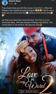 “They should have just left this movie in that Part 1. When did Odogwu start speaking Queen’s English 😏😏😏? Which one is baby can you come over here🌝, Obiora come and do what🤔🤔?