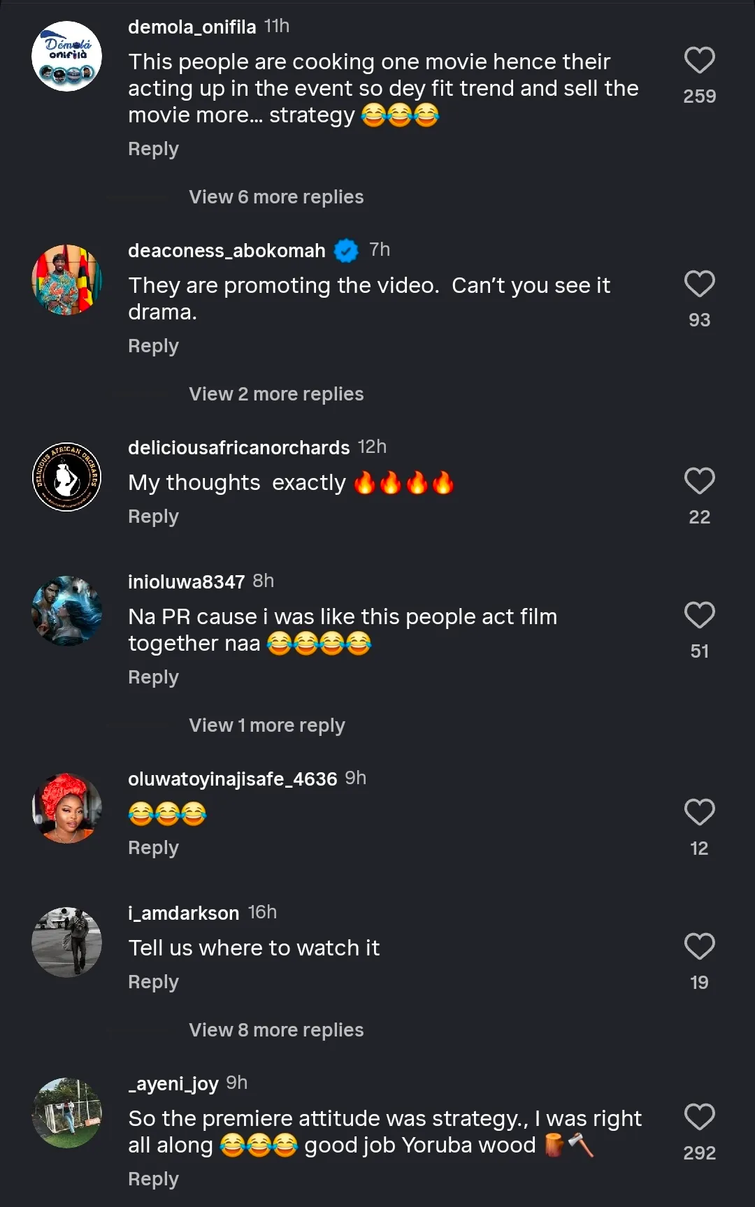 “Have you guys seen The Return of Arinzo teaser? This movie really came with drama from the premiere to the movie. So the attitude and everything happening, is it real or did they plan it? It’s like, I’m trying to put one and two together. I’m going to go and watch this movie,” she said.