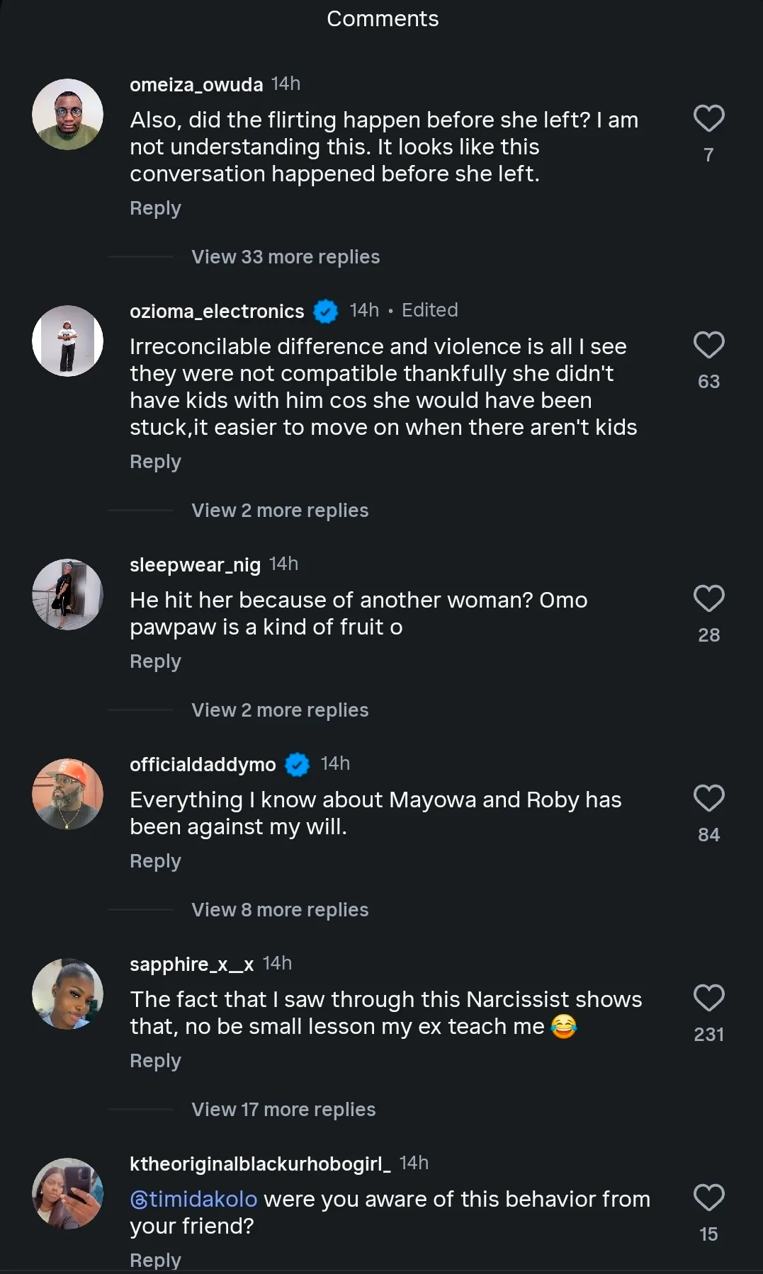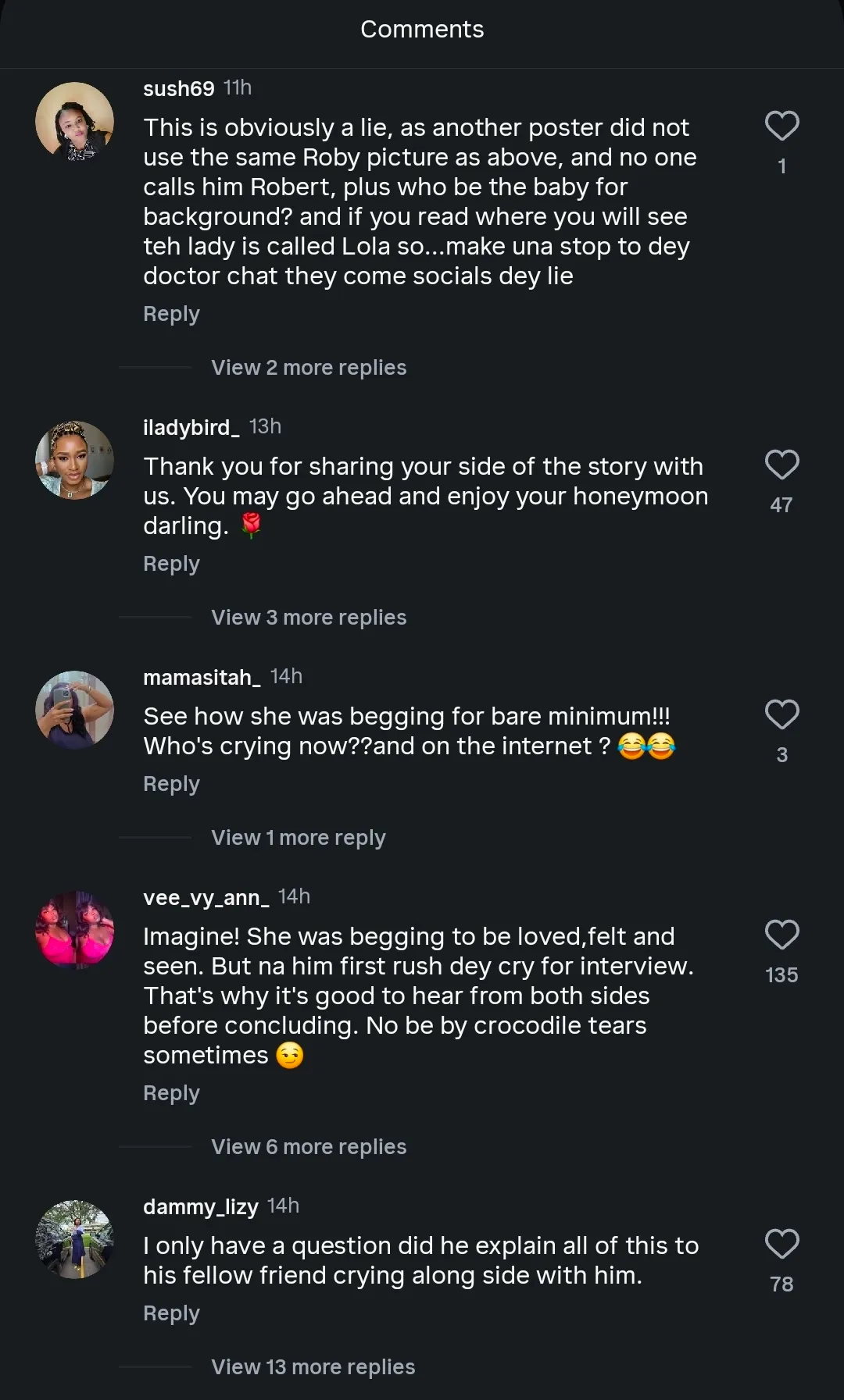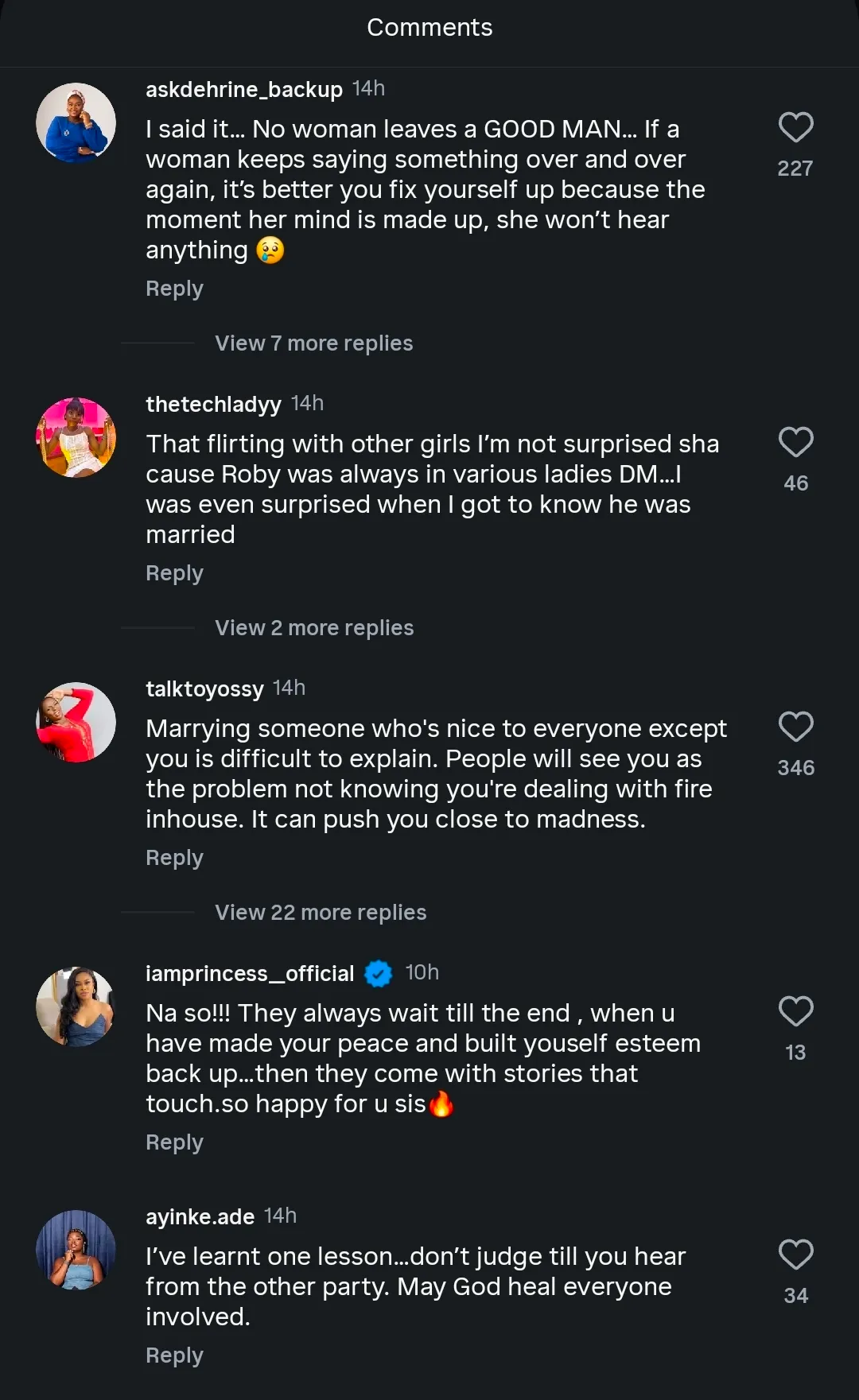 In another exchange, she accused Roby Ekpo of showing affection to other women while neglecting her, which she said took a toll on her self-worth.