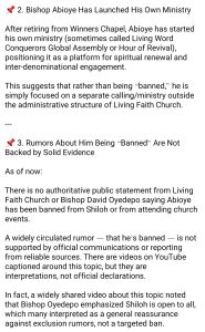Here’s a clear, honest summary of what’s publicly known — and what **isn’t verified — about Bishop David Abioye’s absence from Shiloh 2025 and the rumor that he’s been banned from Living Faith Church (Winners Chapel):