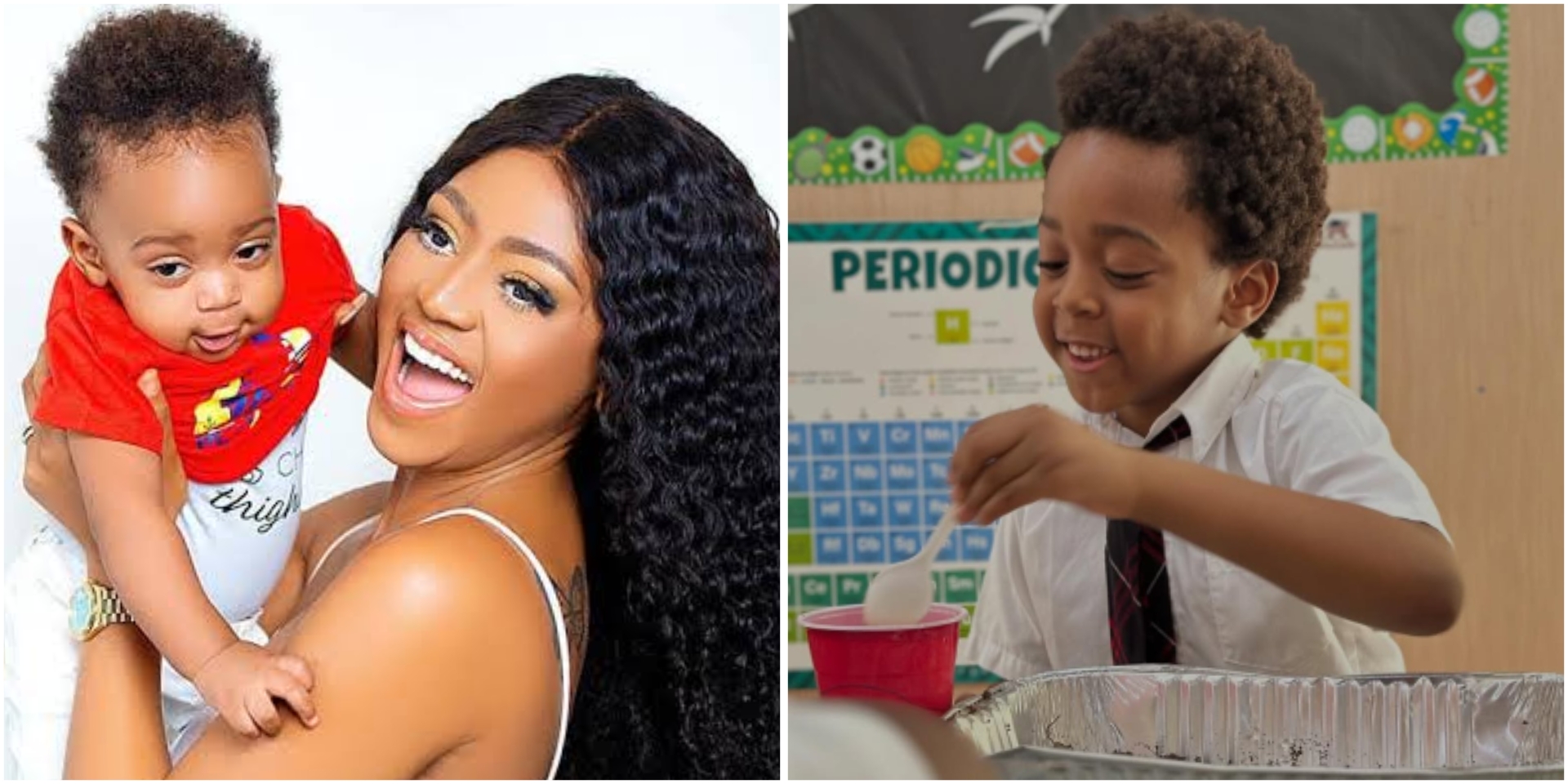 The post triggered a lot of reactions from netizens as Regina Daniels’ son, Munir was used as the first picture before other pupils.