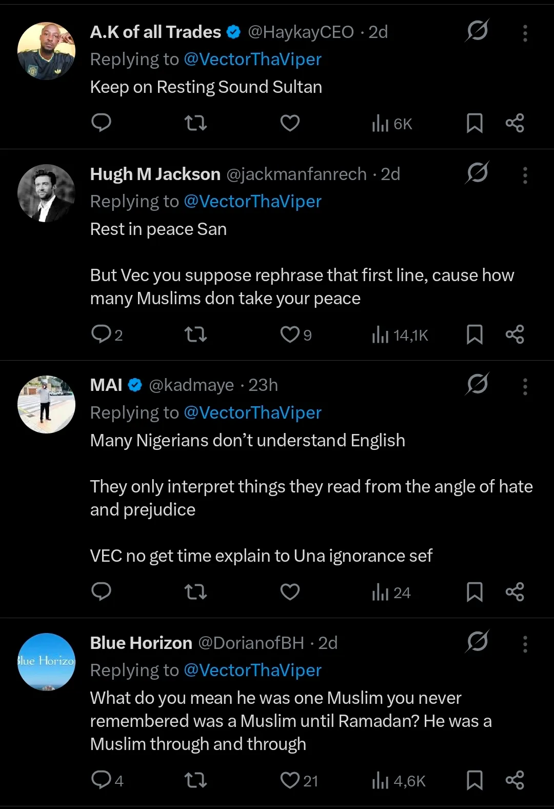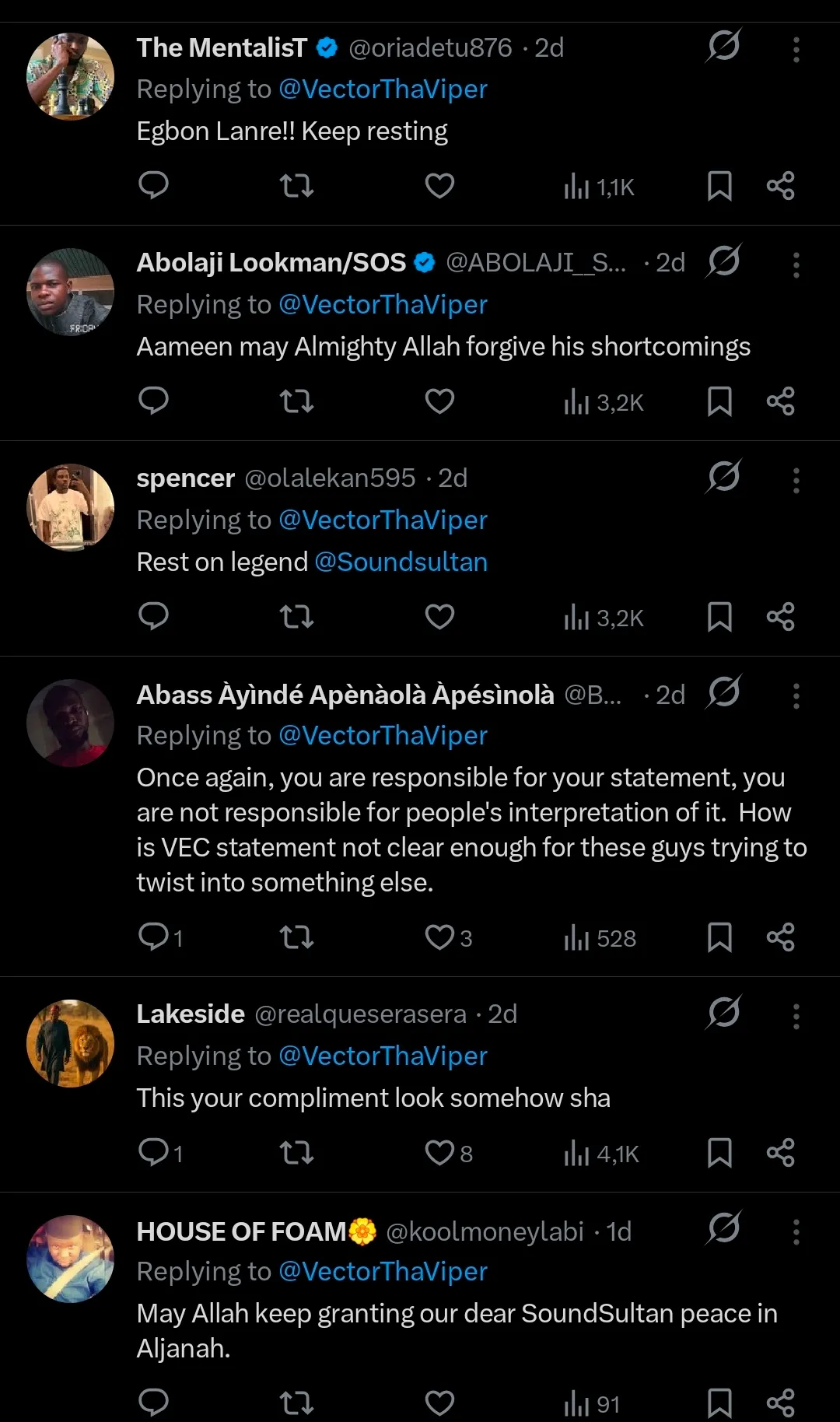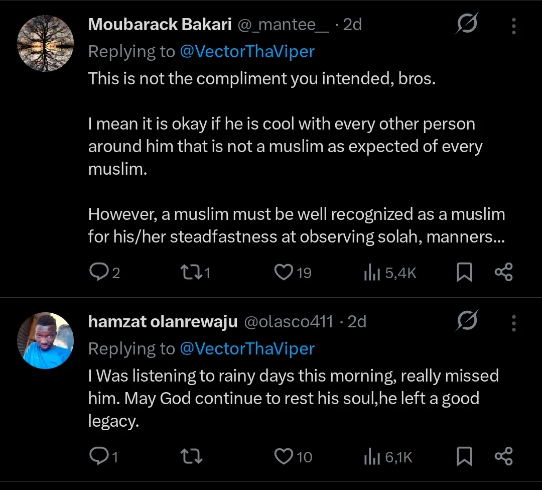 Following Vector’s tribute, some social media users reacted critically to his statement about the late artist’s religious identity, arguing that Sound Sultan remained openly Muslim both during Ramadan and throughout the rest of the year.