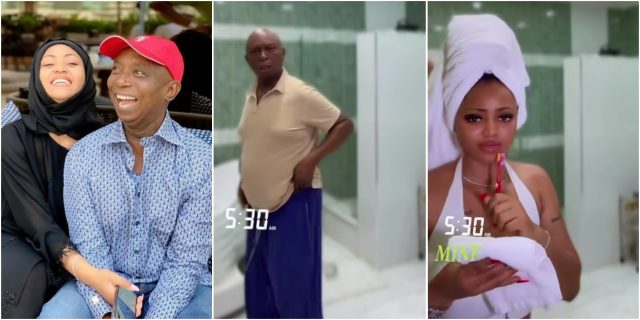 Social media was thrown into frenzy on Monday after Nollywood actress, Regina Daniels, posted a rather unusual video of her husband, Senator Ned Nwoko.