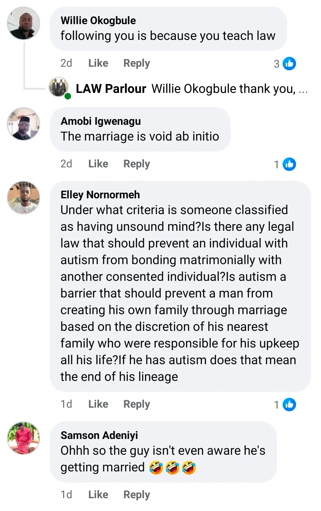 “Apostle Chibuzor of Omega Power Ministry married off his autistic son to a single mother of three children. Let us test the legality or otherwise of that marriage. Let me tell you, that marriage is invalid. It is void for two reasons.”