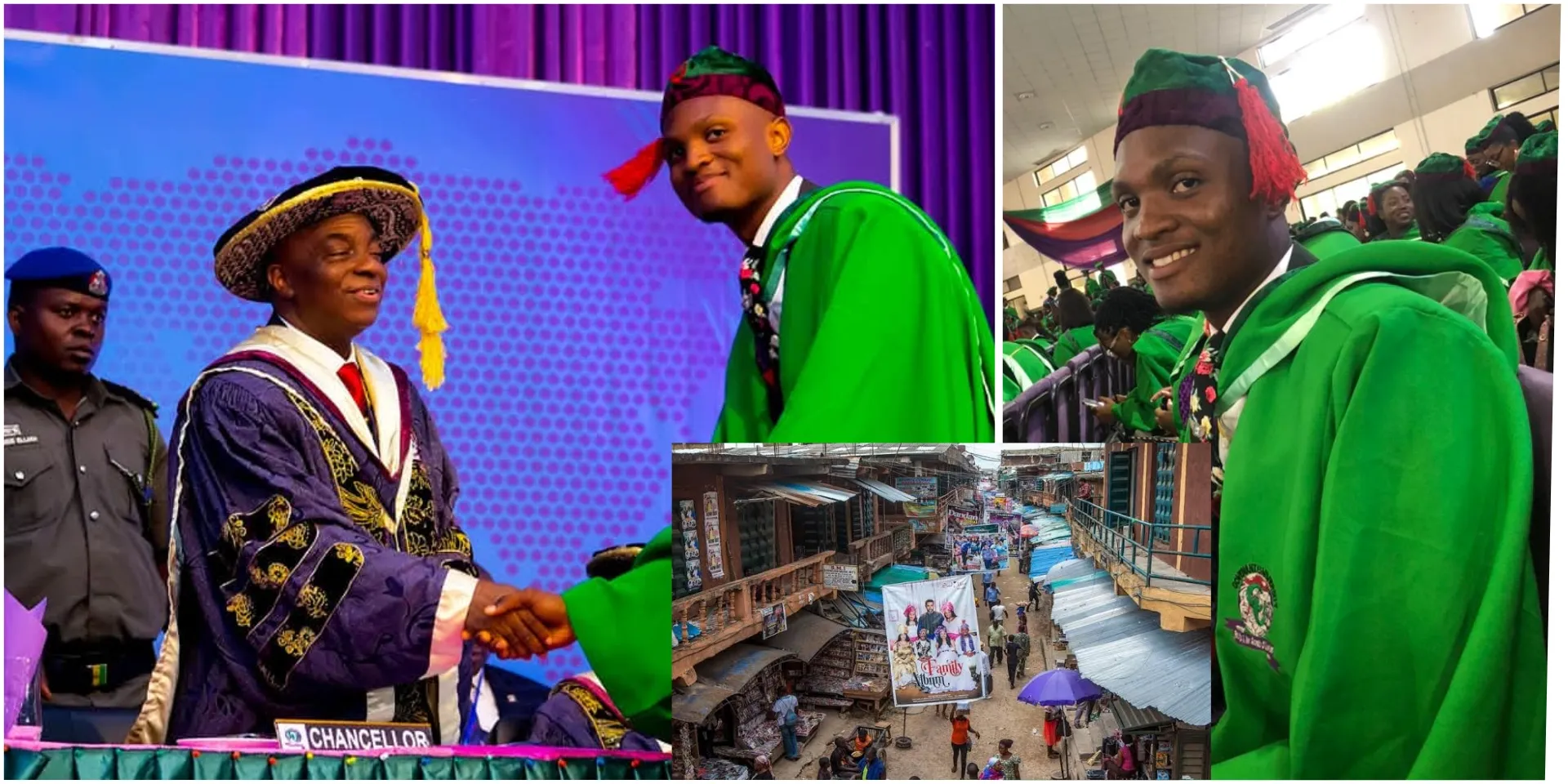 A Covenant University first-class graduate, Onwuka Wisdom, has grabbed the attention of internet users after he was spotted selling phone accessories at the Alaba International Market.