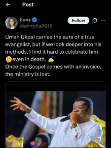 “Umah Ukpai carries the aura of a true evangelist, but if we look deeper into his methods, I find it hard to celebrate him 🤔even in death. ✍️