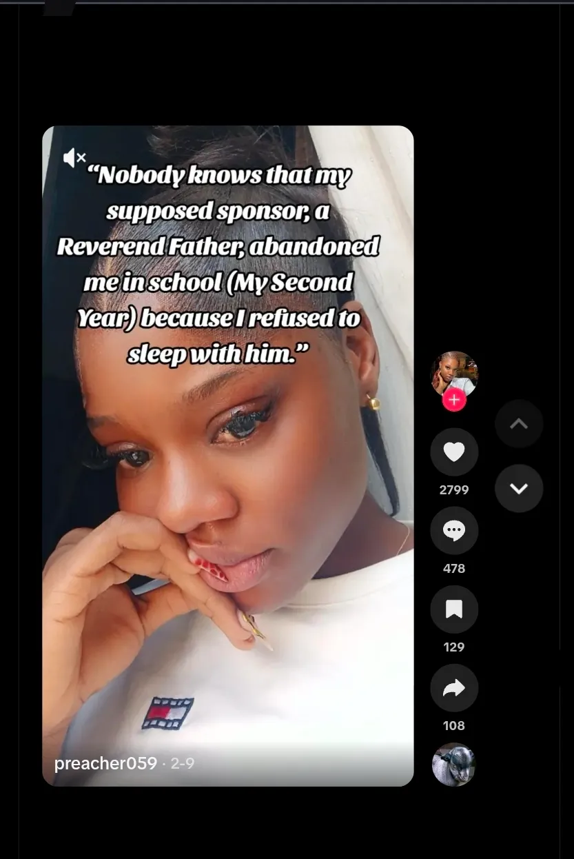 “Women are at risk”: Lady exposes disturbing condition Reverend father in his 70s gave her to continue sponsoring her in school