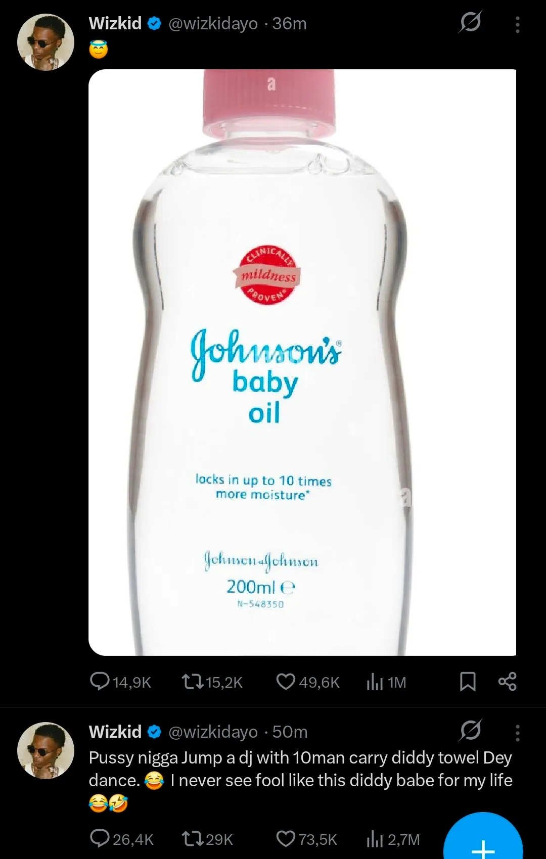 “Pussy nigga Jump a dj with 10man carry diddy towel Dey dance. 😂 I never see fool like this diddy babe for my life 😂🤣.”